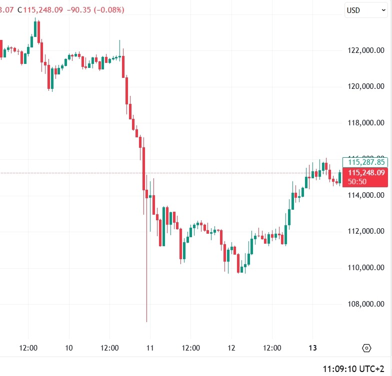 Også kryptovalutaer blev trukket med i nedgangen. Bitcoin faldt omkring 8 procent, Ethereum tabte 6 procent, og flere altcoins faldt tocifret. Likvidationer af gearede positioner nåede rekordniveau.