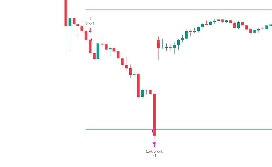 Det er ikke kun en måde at spekulere på, men for mange en måde at være fleksibel i urolige perioder – og samtidig skabe afkast, når andre porteføljer går tilbage. For nogle fungerer det også som en naturlig hedge. Nedenfor ser du, hvordan vores breakout-strategi Nordic Breakout kan indstilles på “Short” i stedet for “Long” og dermed give et short-signal fredag aften i Nasdaq-indekset på 15 minutters-grafen. Du kan selv få fat i Nordic Breakout-strategien, hvis du tilmelder dig forløbet “Den simple metode til daytrading“.